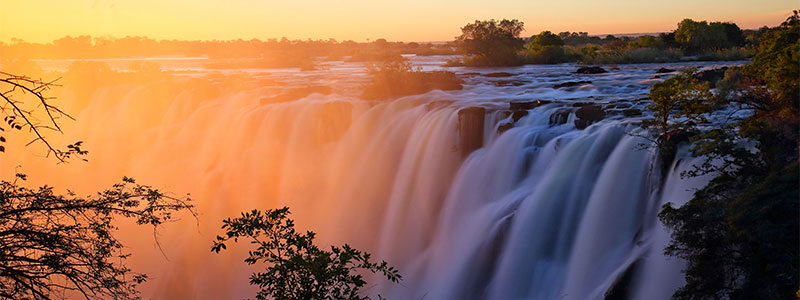 En guidad tur vid Viktoriafallen som av lokalbefolkningen kallas för Mosi-oa-Tunya/the smoke that thunders. Det är en fantastisk upplevelse att se tusentals kubikmeter vatten forsa fram med ett mullrande och falla ner till botten av ravinen. Viktoriafallen är ett av världens största vattenfall, dubbelt så högt som Niagarafallen. Övernattning i Victoria Falls. Frukost ingår.