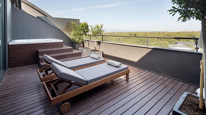 På Voyage är det kvalitét som gäller, det ser man i boende, service, restauranger och barer. Vill man komma undan semesterfirande barnfamiljer har hotellet en separat ”vuxenrestaurang” och även en ”vuxenpool” där det är lite lugnare. Spelar ni golf så finns Europatourbanan Monty direkt utanför hotellet. Här vet vi att ni kommer att trivas!