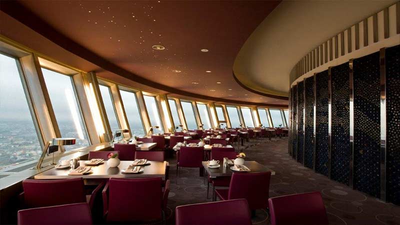 Paris har Eiffeltornet, London Big Ben och New York Empire State Building. I Berlin har man TV-tornet. Tornet är fortfarande Tysklands högsta byggnad med sina 368 meter och byggdes av DDR med invigning 1969. I kupolen, på ca 200 meter höjd, har man en milsvid utsikt, upp till 8 mil om vädret tillåter. Här uppe ser Berlin litet ut och alla stadens sevärdheter ser så nära ut. Det är ganska fantastiskt att se allt från denna höjd. Man ser Brandenburger Tor, Potsdamer Platz, Olympiastadion, floden Spree som slingrar sig genom staden och man ser flygen som startar och landar på Tegel-flygplatsen. Att inredningen bevarats sedan 60-talet är ingen nackdel, detta är en riktig nostalgitripp! För att komma upp i tornet måste man gå igenom en säkerhetskontroll. Tyvärr är man inte tillåten att åka upp i tornet om man sitter i rullstol eller har problem att själv ta sig fram.