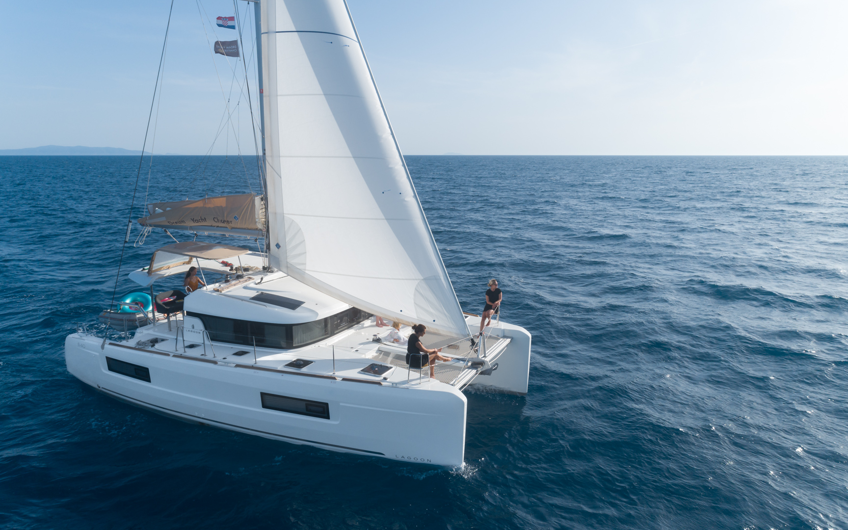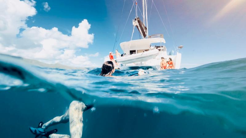 En av fördelarna med katamaraner jämfört med enskrovsbåtar är att du får en bekväm upplevelse ombord för att äta, koppla av och njuta av utsikten.