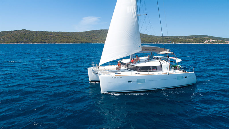 Katamaranens design, har två parallella skrov istället för ett enda skrov som traditionella båtar. Katamaraner har fördelar som ökad stabilitet och mindre djupgående, vilket gör dem lämpliga för olika ändamål, inklusive kryssningar och avkopplande seglingar. De bredare och stabilare skroven gör det oftast enklare att röra sig runt och skapar mer utrymme för bekvämlighet ombord, inklusive områden för att äta, koppla av och njuta av utsikten.