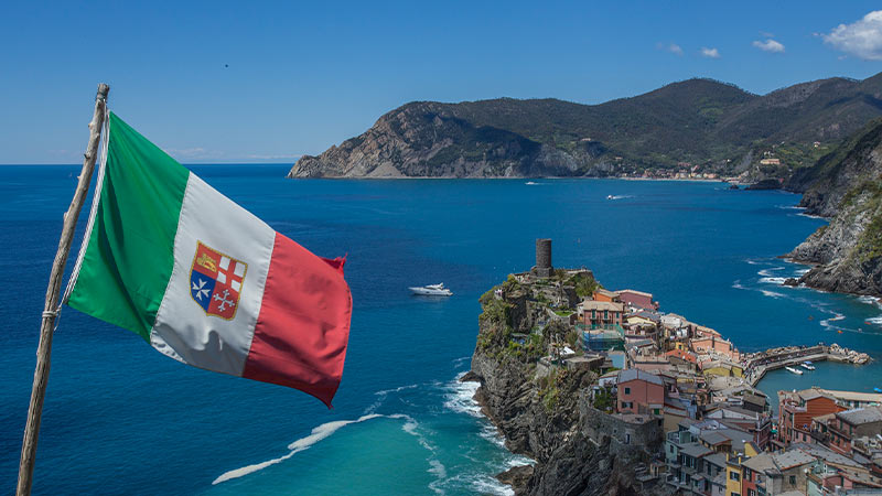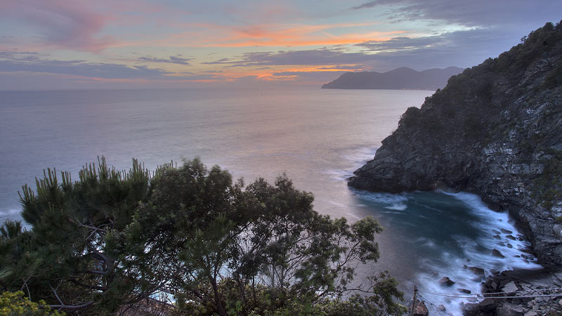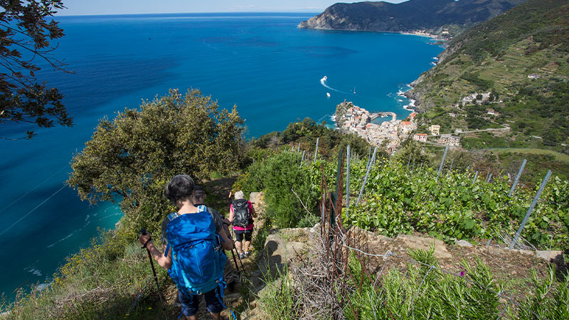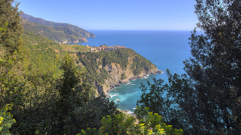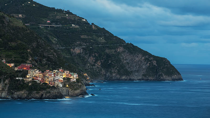 Inkilade bland väldiga kullar klädda i terrasser med vinrankor väller pastellfärgade hus ner i havet. 1997 utsågs Cinque Terre och det kringliggande området till nationalpark. Totalt finns här lite över tolv mil vandringsstigar